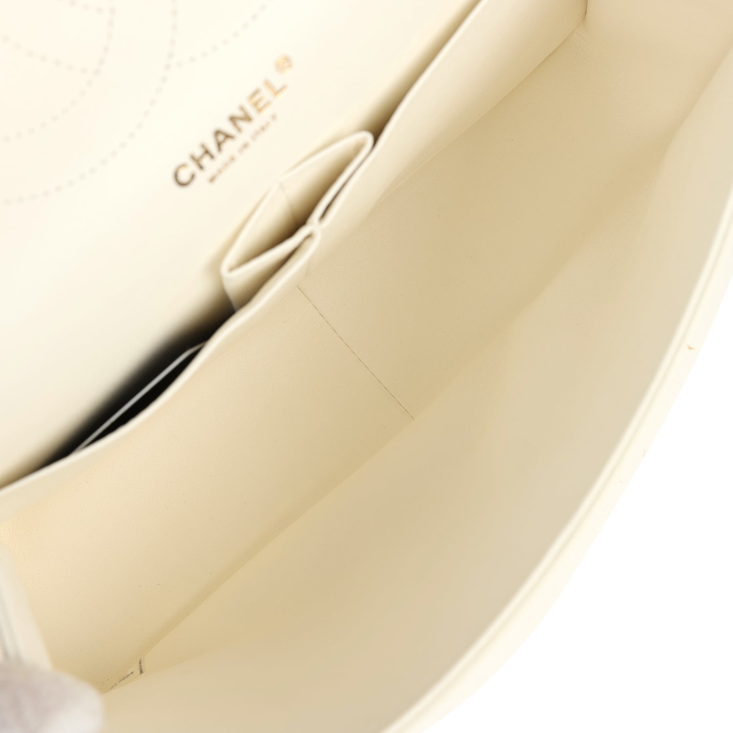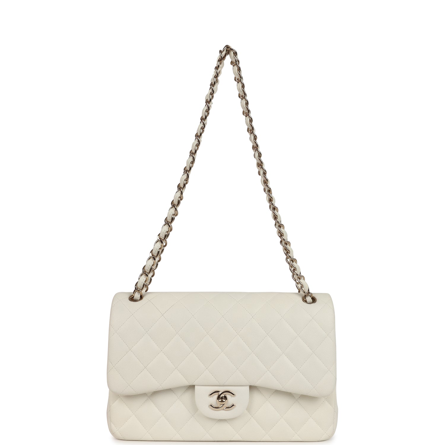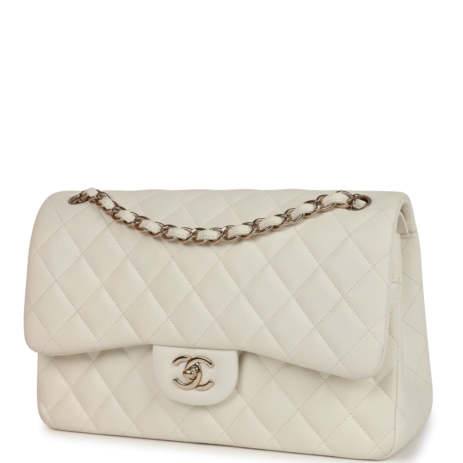 • Chanel Jumbo Classic Double Flap White Caviar Light Gold Hardware