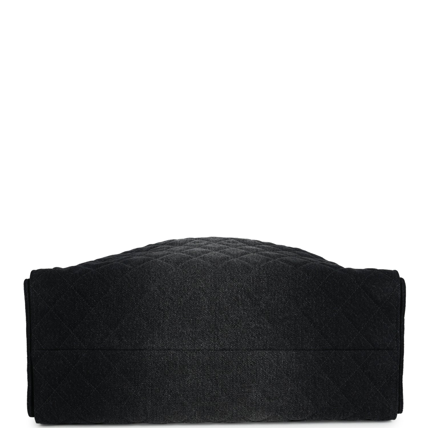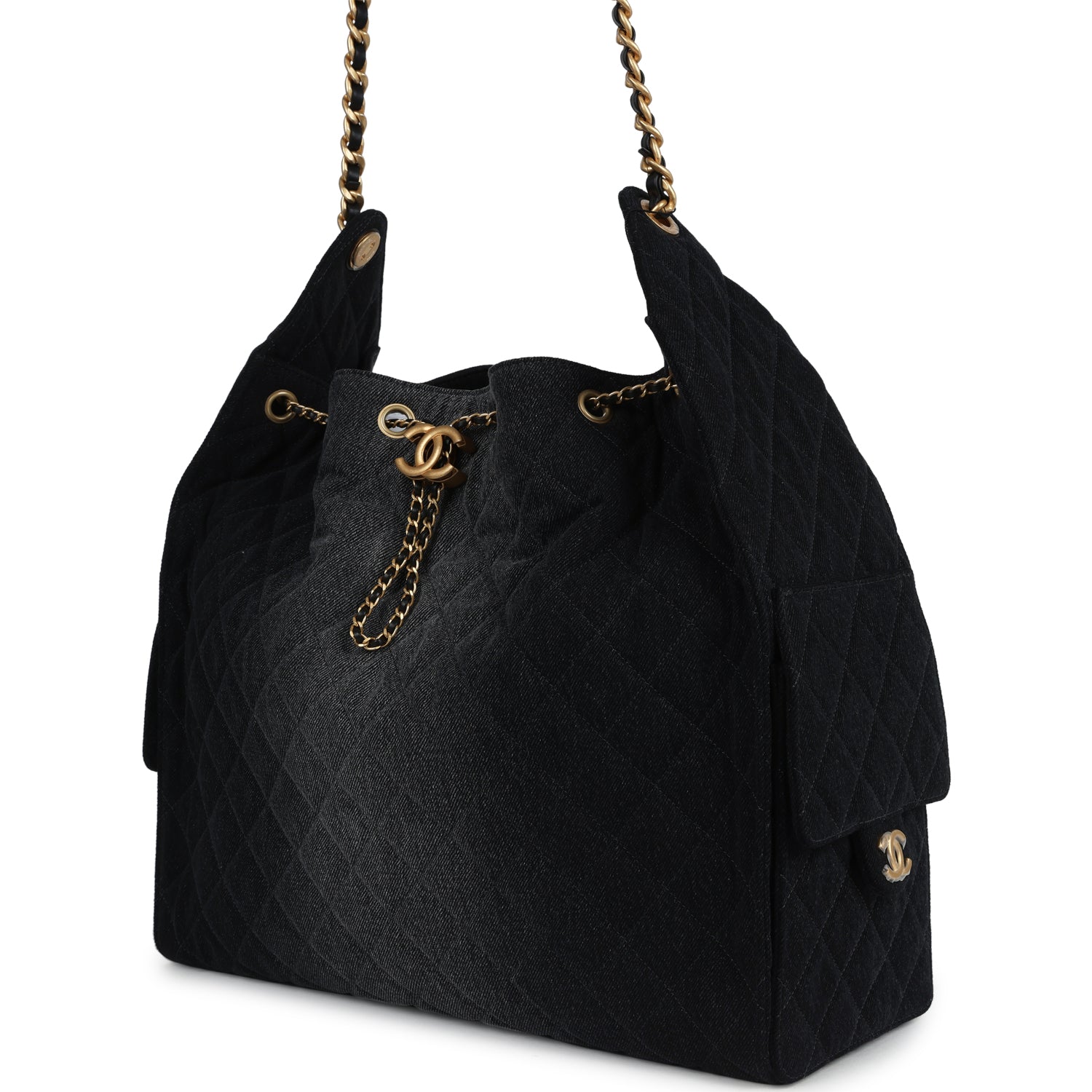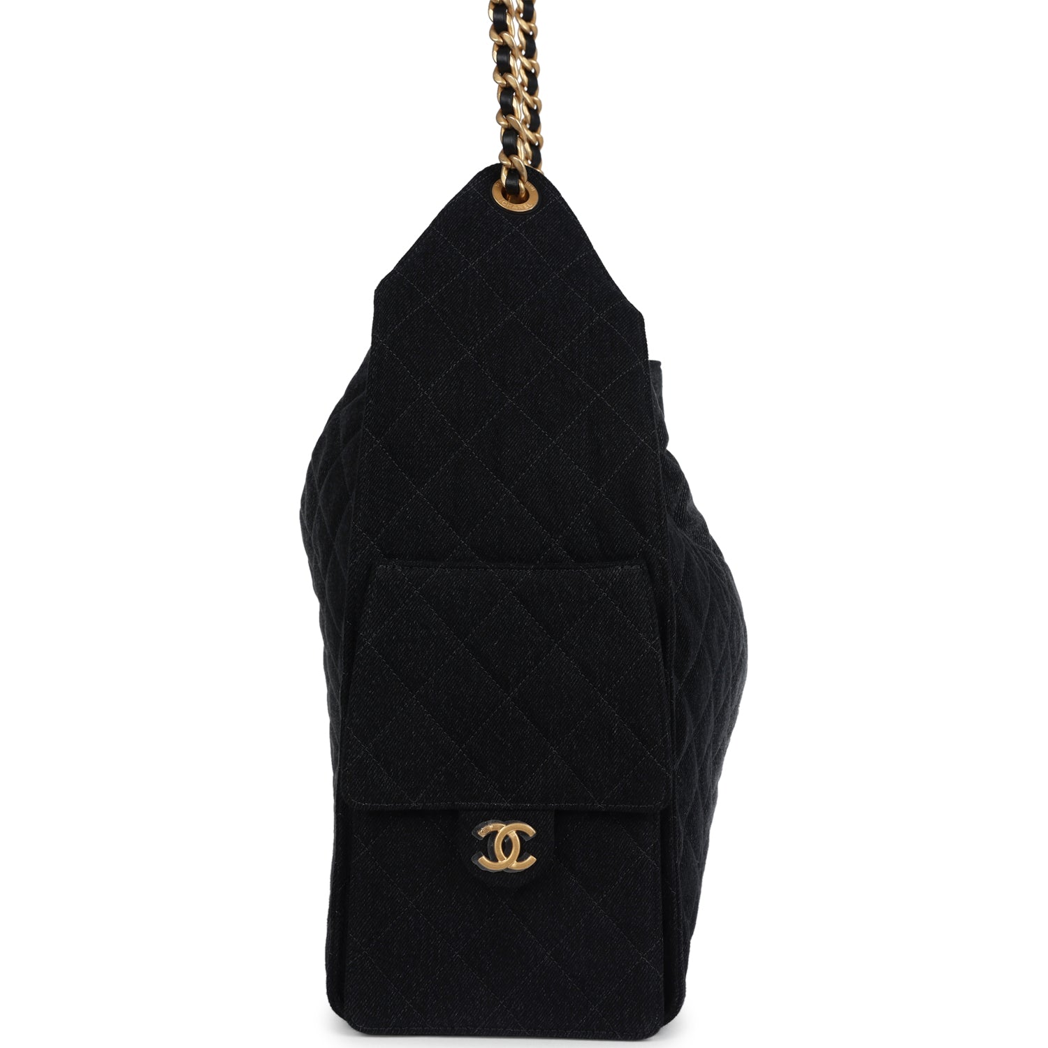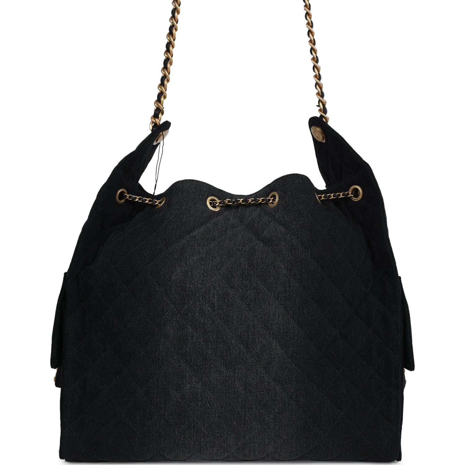 Chanel Large 25 Hobo Bag Black Washed Denim Antique Gold Hardware