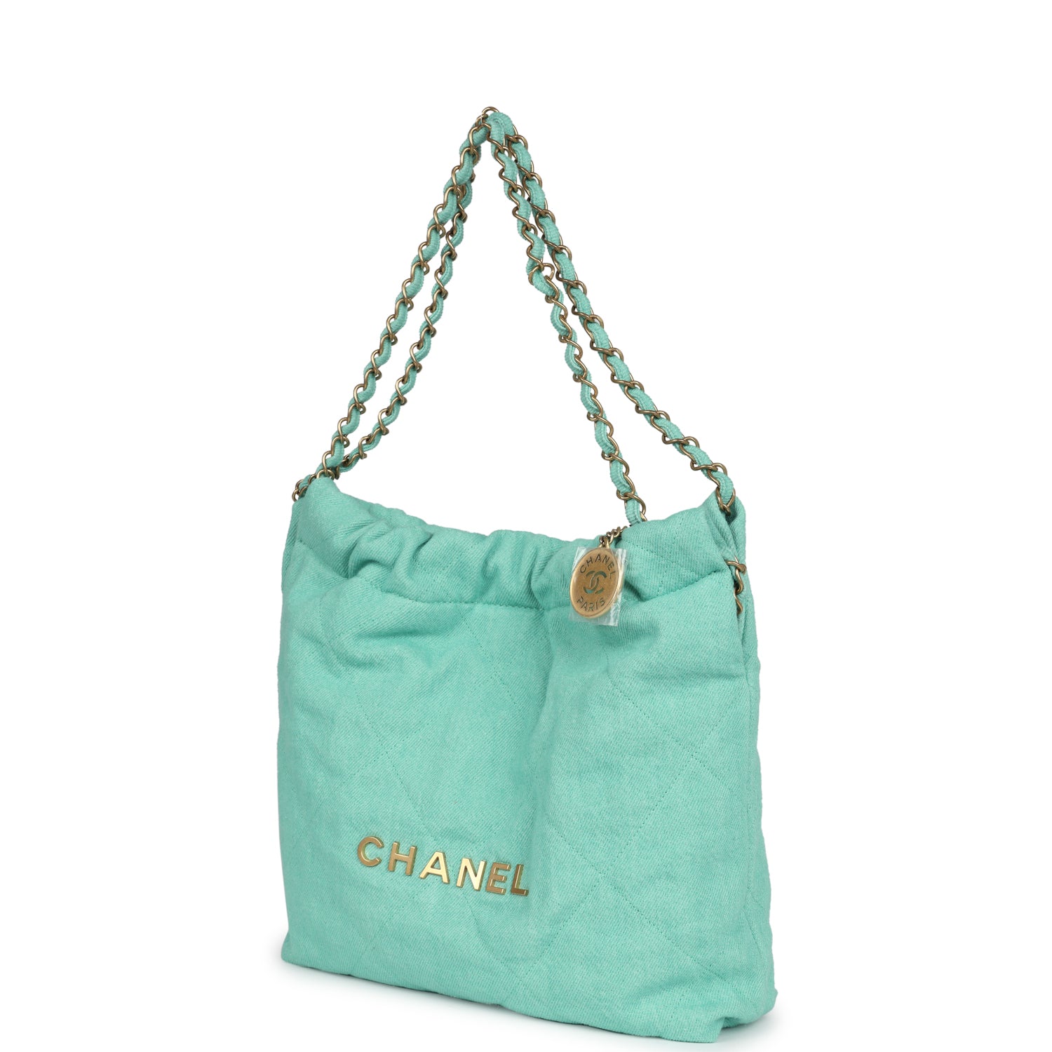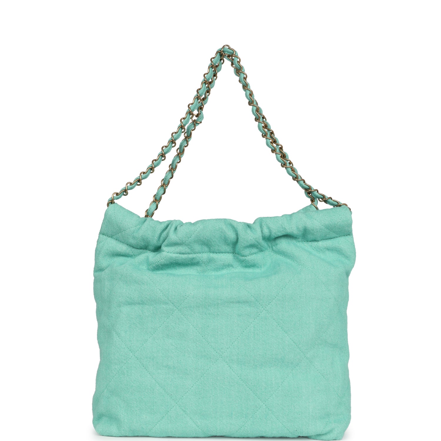 Chanel Small 22 Bag Light Green Washed Denim Gold Hardware