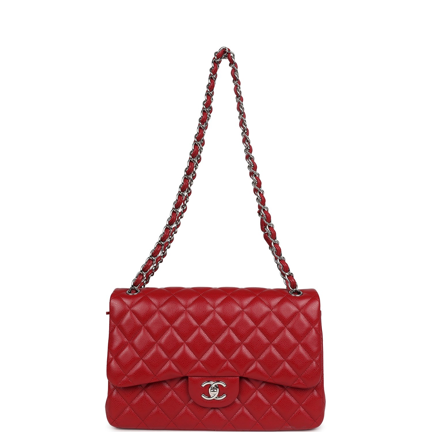 Pre-owned Chanel Jumbo Classic Double Flap Red Caviar Silver Hardware
