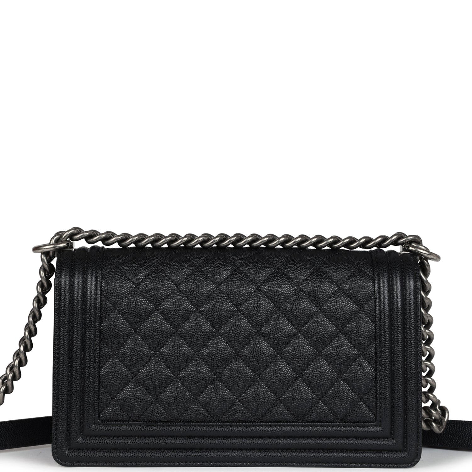 Pre-owned Chanel Medium Boy Bag Black Caviar Aged Ruthenium Hardware