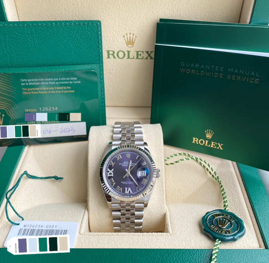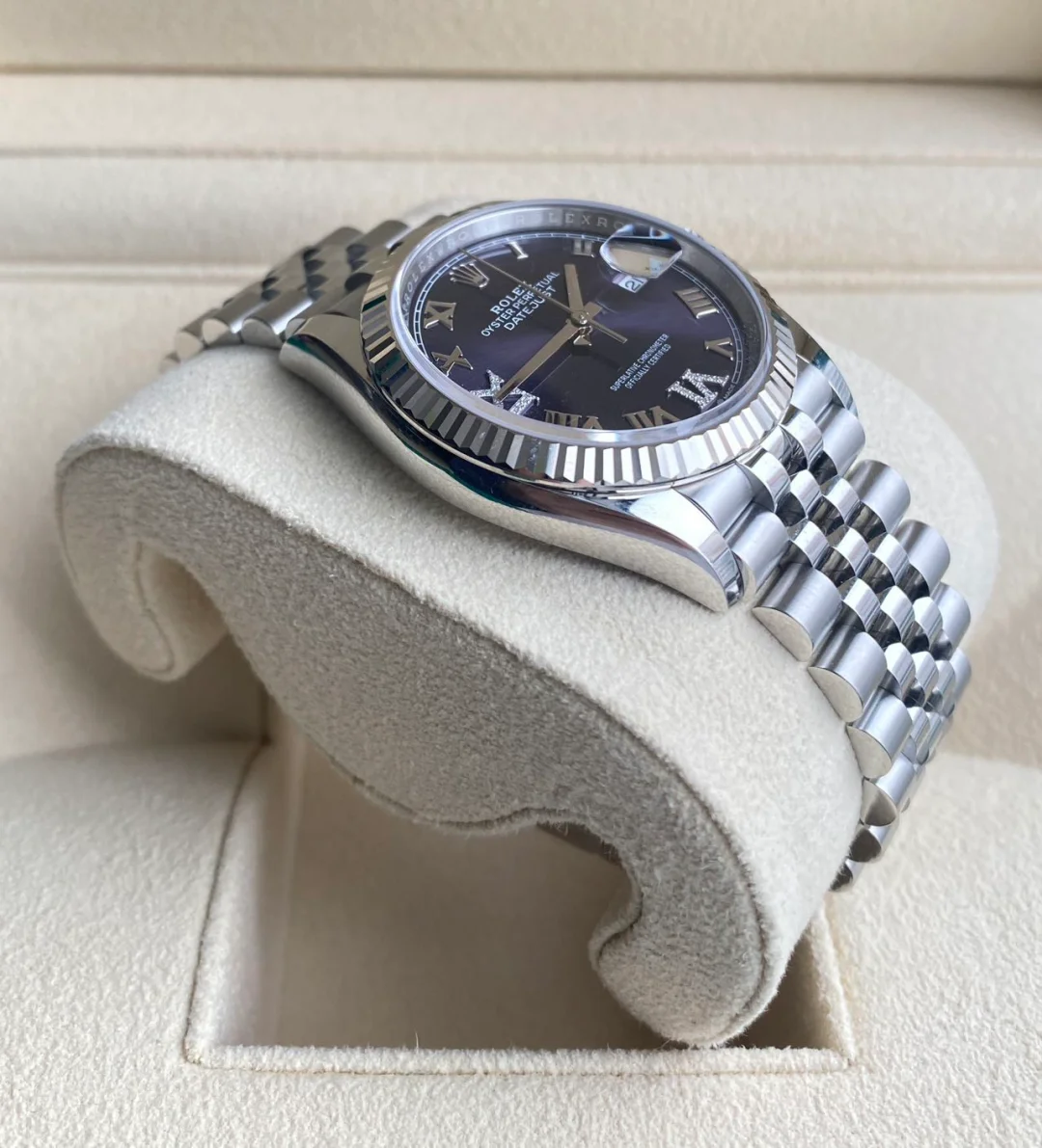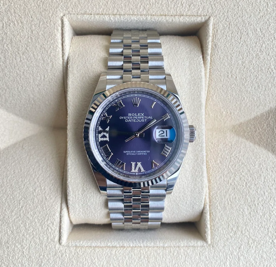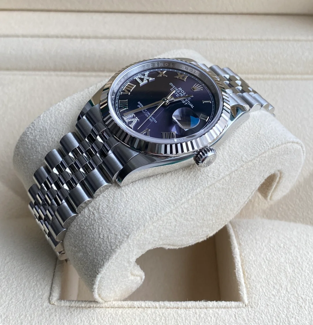 Rolex Datejust Purple Roman Numeral Diamond Dial Fluted Bezel 36mm 126234