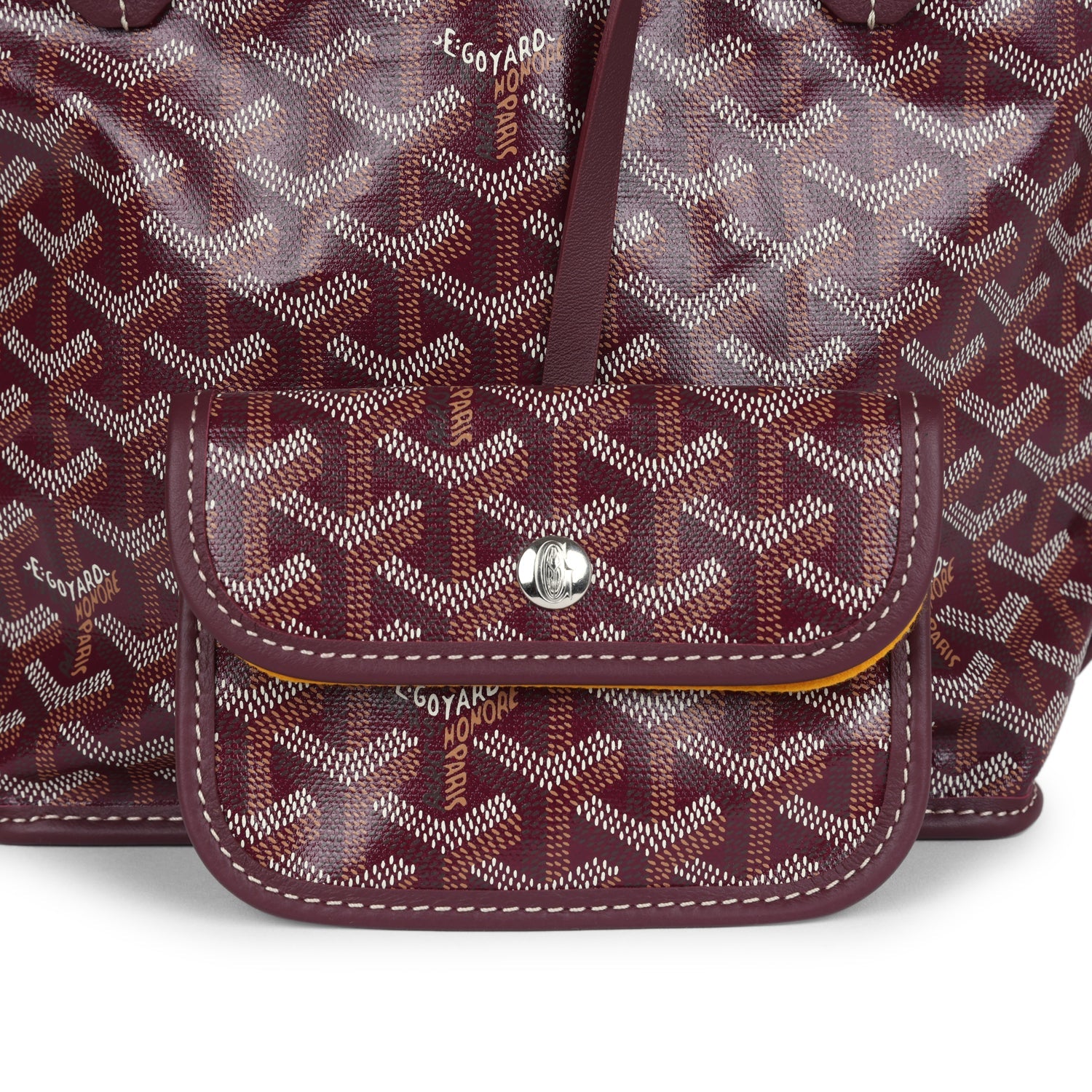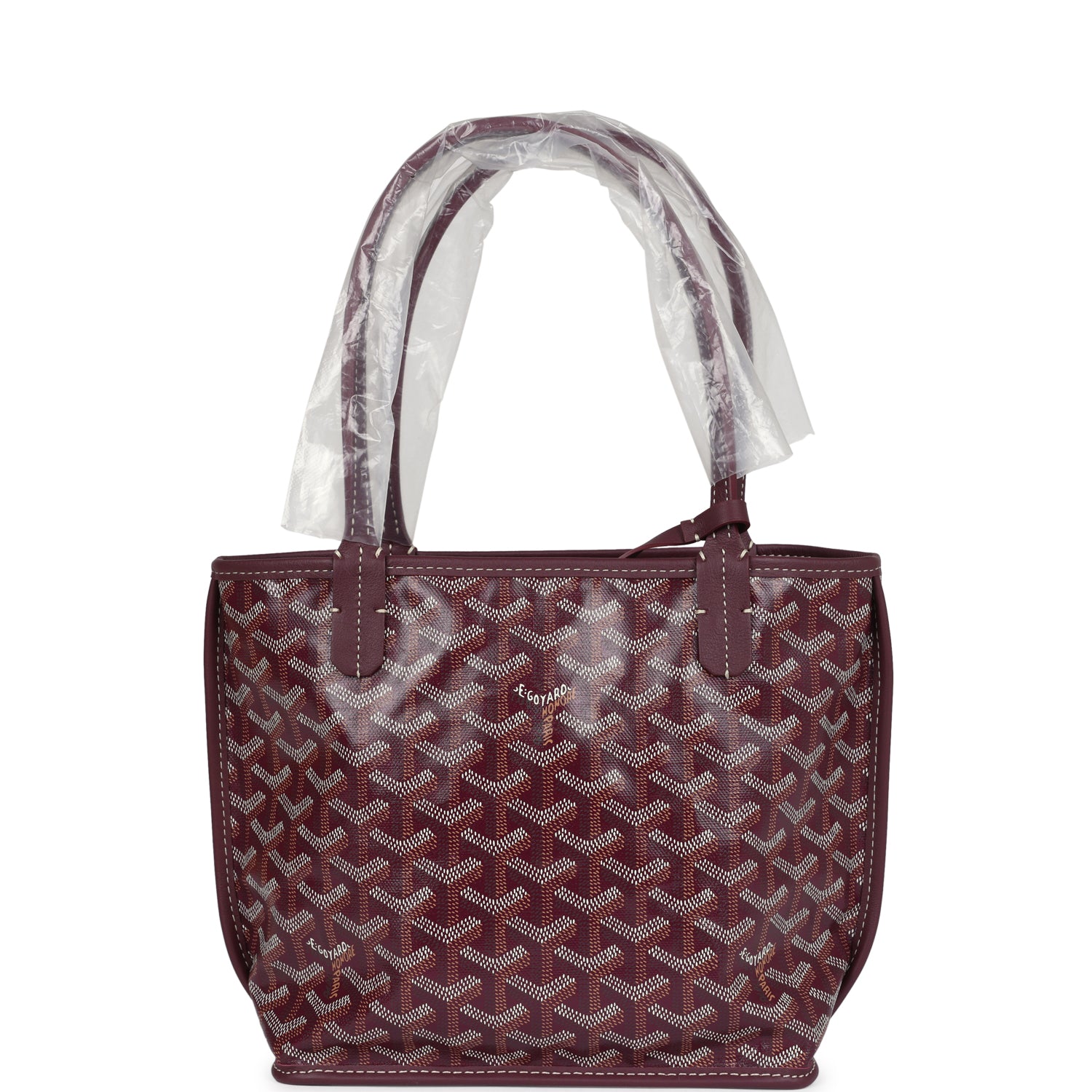 This Anjou mini reversible tote is in burgundy goyardine canvas and leather with palladium hardware and features contrast stitching, calfskin and is reversible.