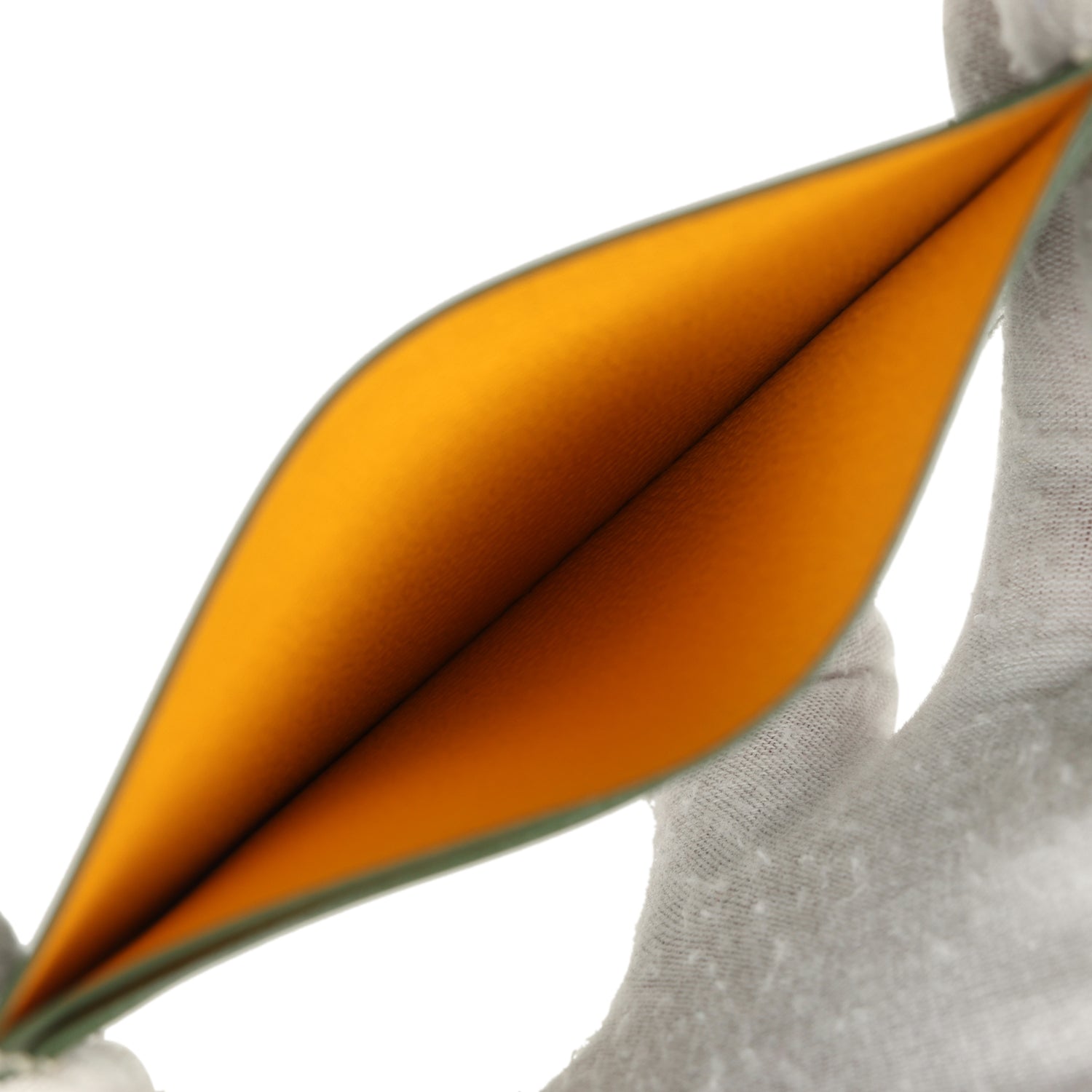 The interior is lined in yellow Nievre Goatskin lining and has four card slit pockets and one middle slit pocket