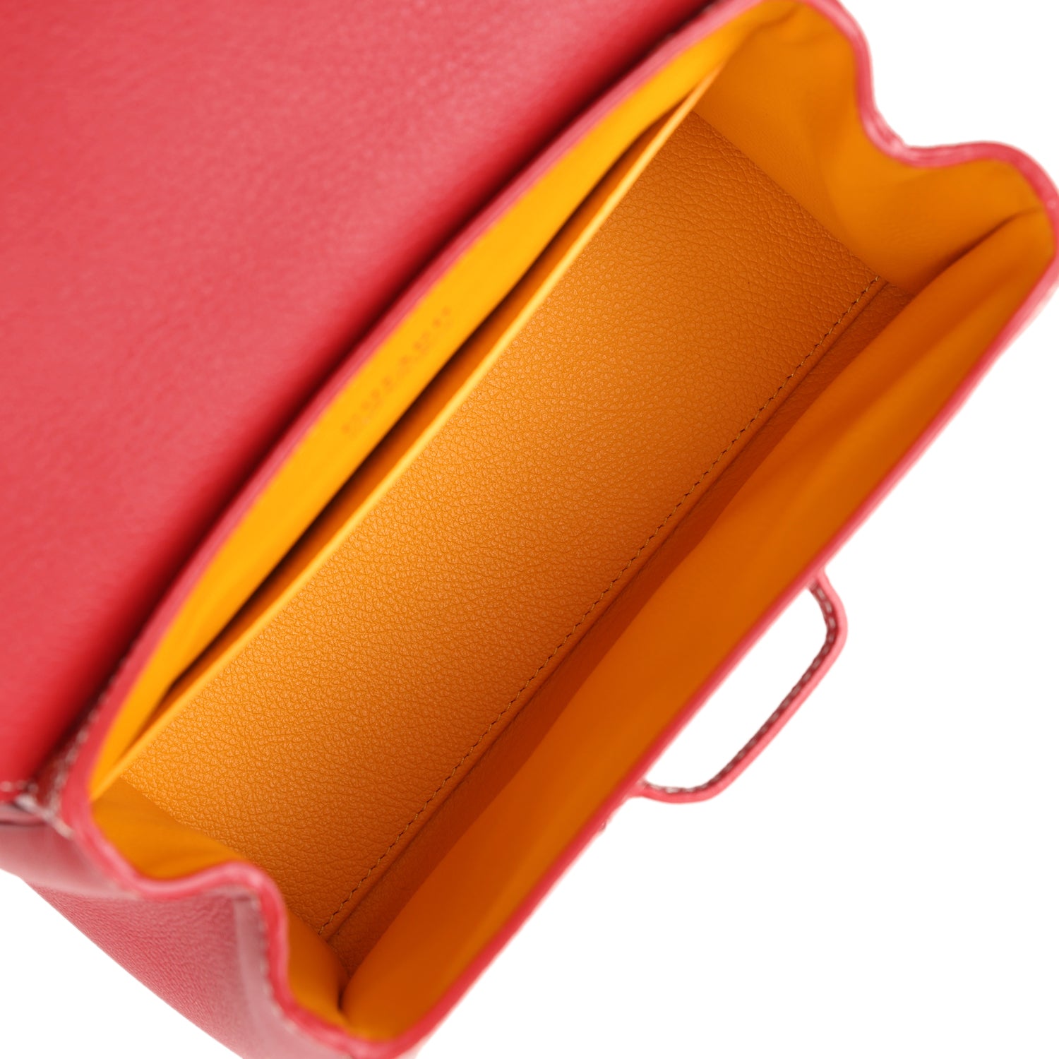 The interior is lined with red leather with one slip pocket.