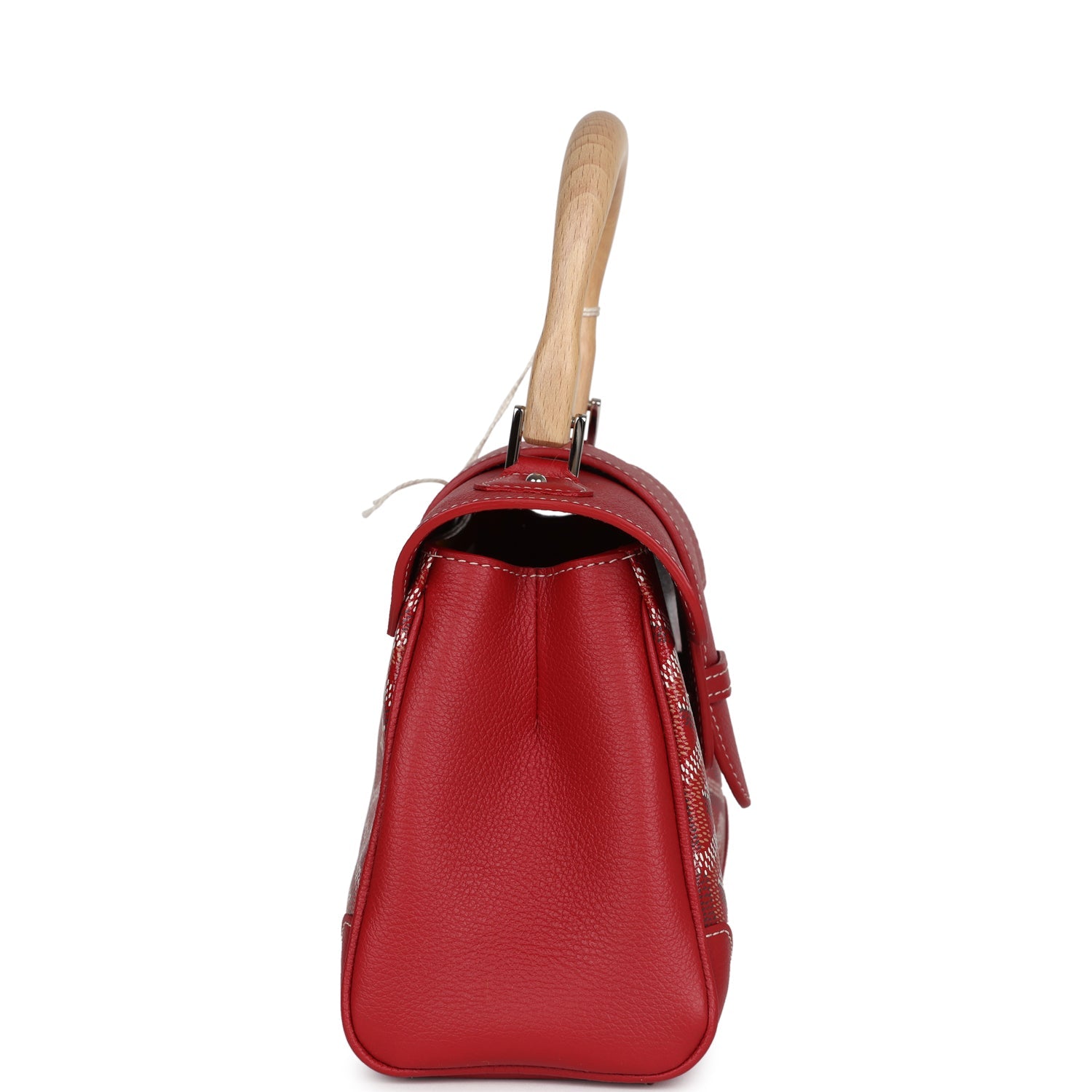 This Saigon Souple Mini is of red calfskin leather and goyardine canvas with palladium hardware and features front flap, top handle, removable strap and tonal stitching.
