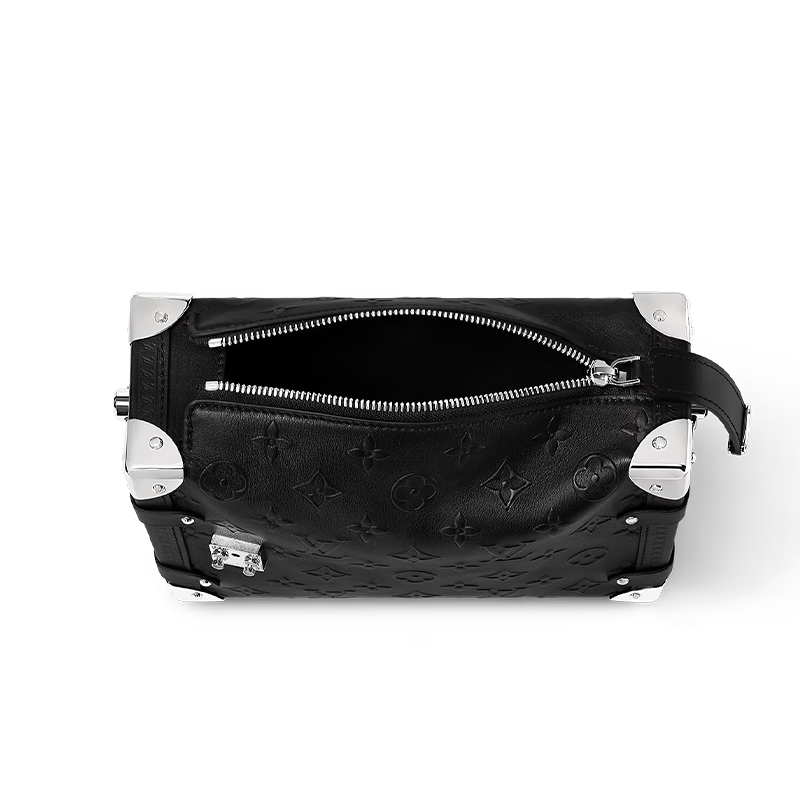 The elegant Side Trunk MM handbag is Creative Director Nicolas Ghesquière’s ode to the House’s historic trunks. Made from grained calf leather with smooth cowhide-leather trim, it features an S-lock and reinforced metallic corners. The removable handle enables hand carry while the detachable and adjustable leather strap adjusts for shoulder and cross-body wear.