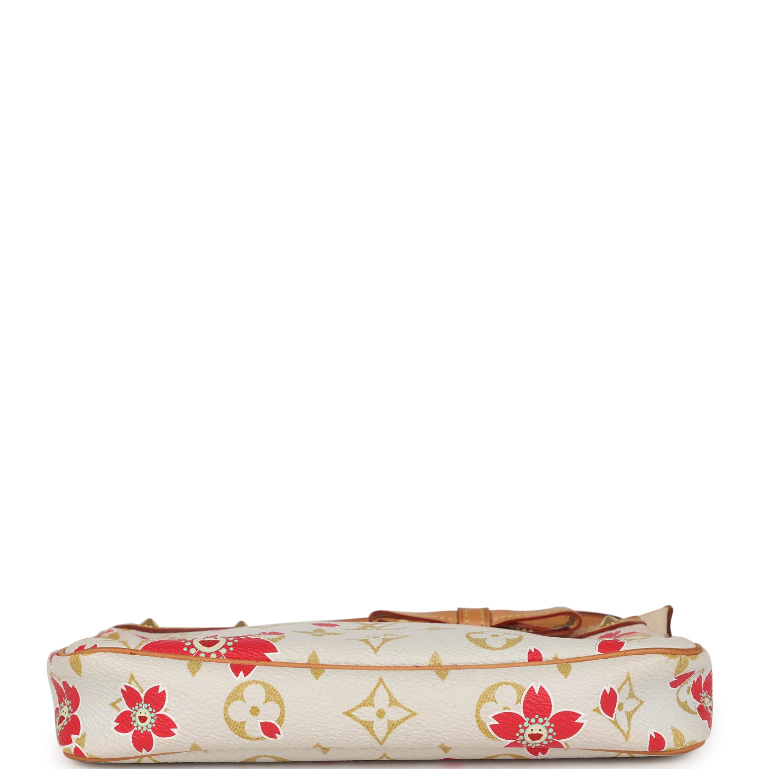 Vintage Louis Vuitton x Takashi Murakami Red and Creme Monogram Cherry Blossom Pochette Gold Hardware