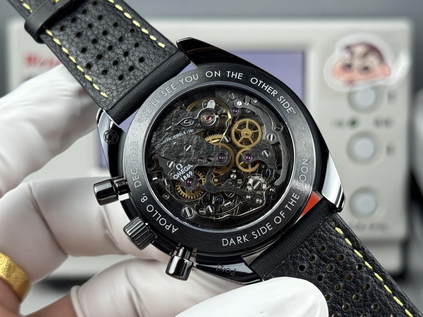 The specially decorated movement inside is the OMEGA Calibre 1869, while the engravings on the caseback include “APOLLO 8, DEC 1968”, “DARK SIDE OF THE MOON”, and “WE’LL SEE YOU ON THE OTHER SIDE