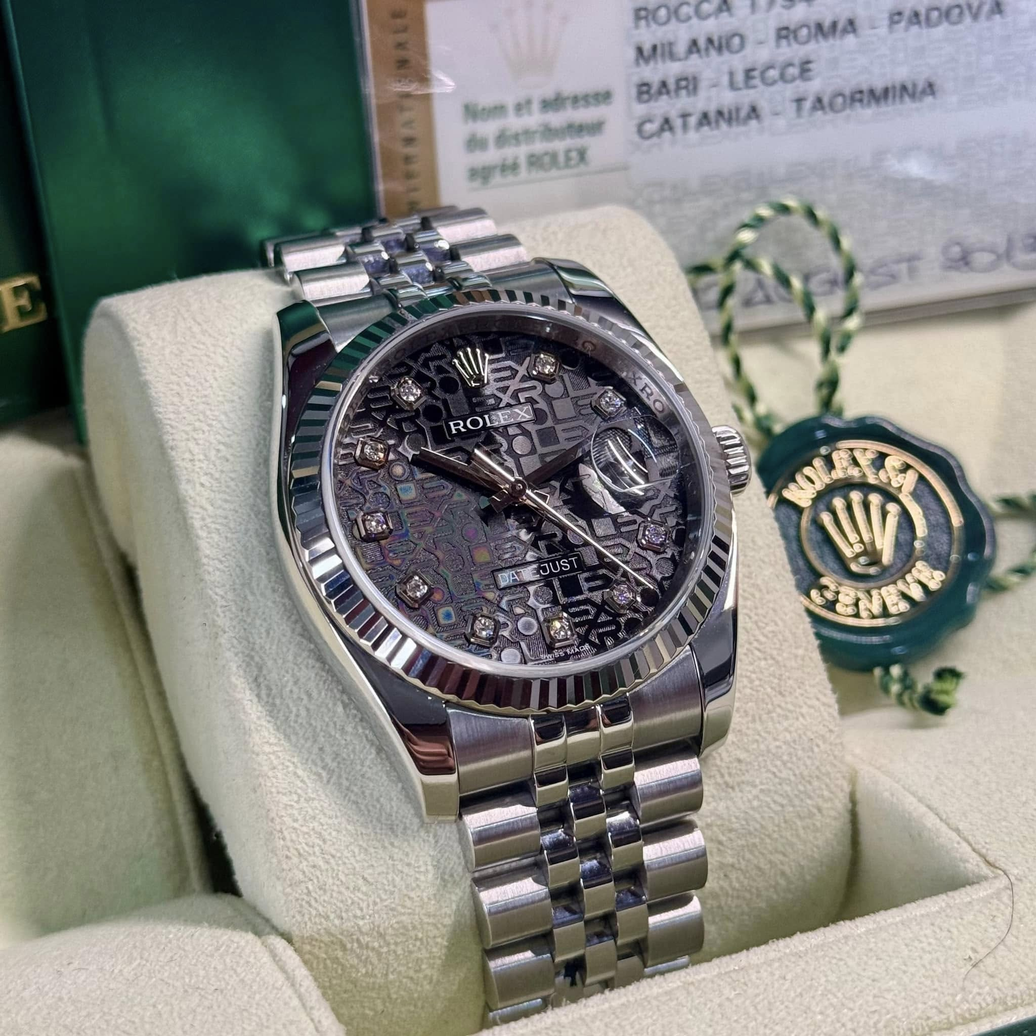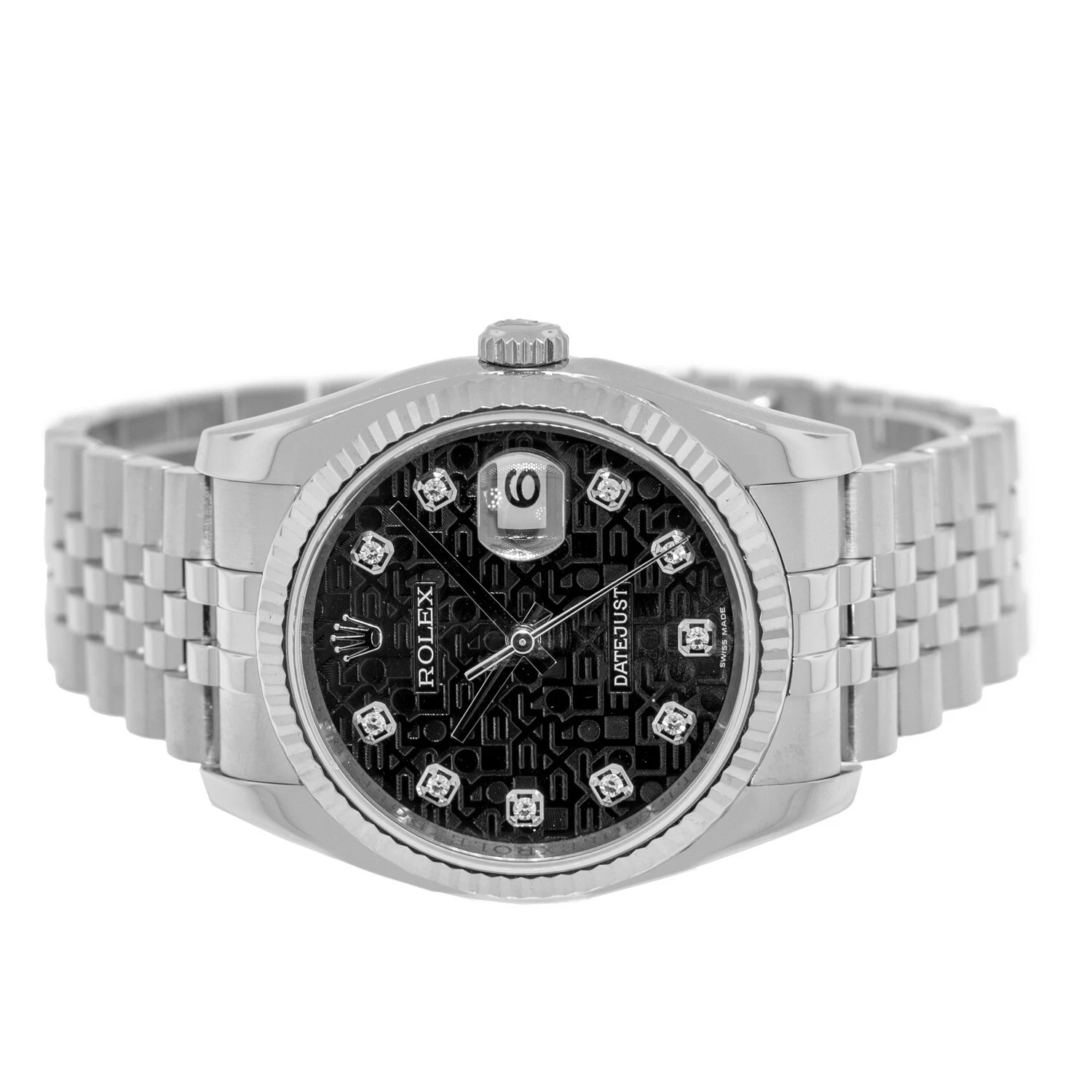 • Rolex Datejust 36mm - Black Diamonds Dial, 18k White Gold Bezel 116234