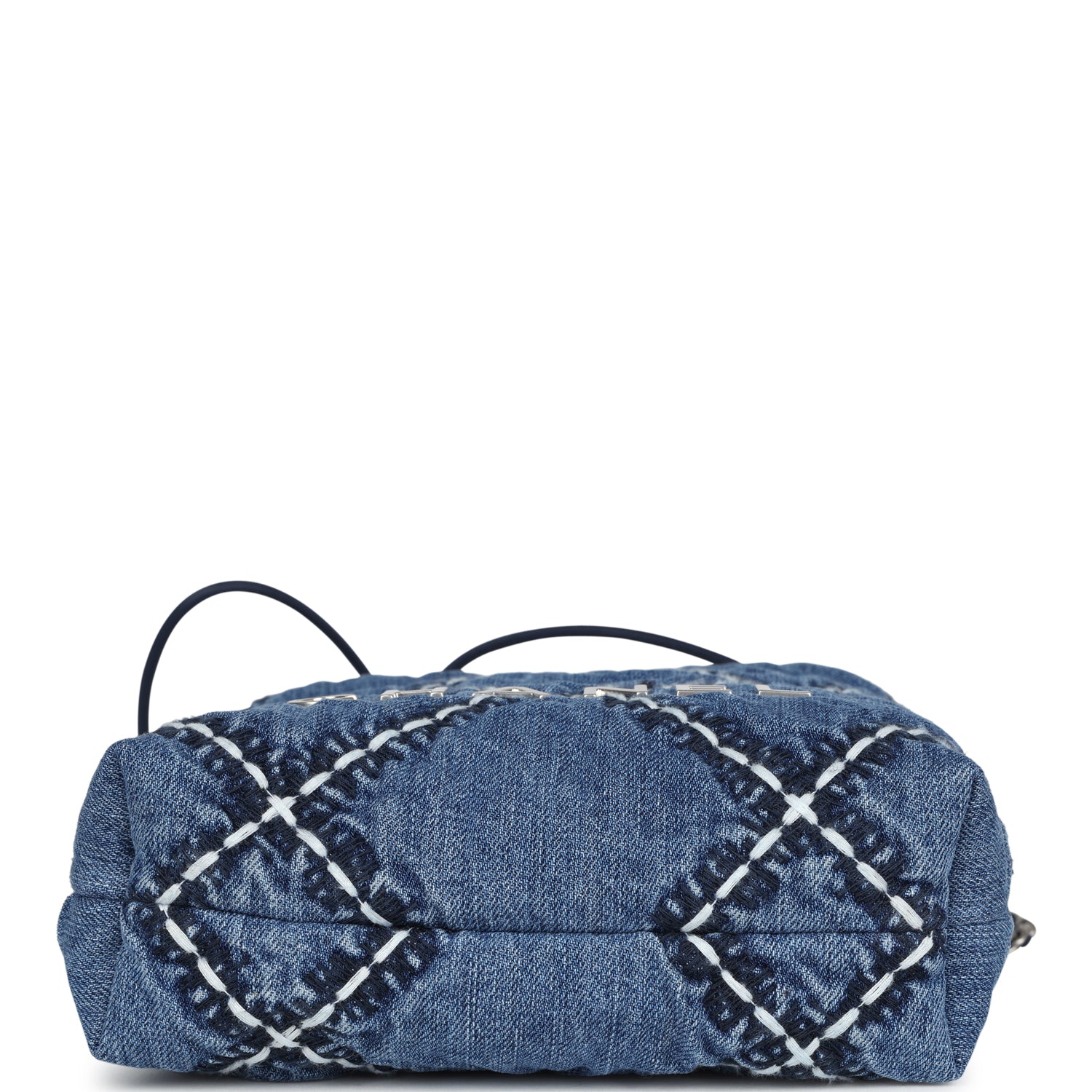 Chanel Mini 22 Bag Blue Stitched Denim Silver Hardware