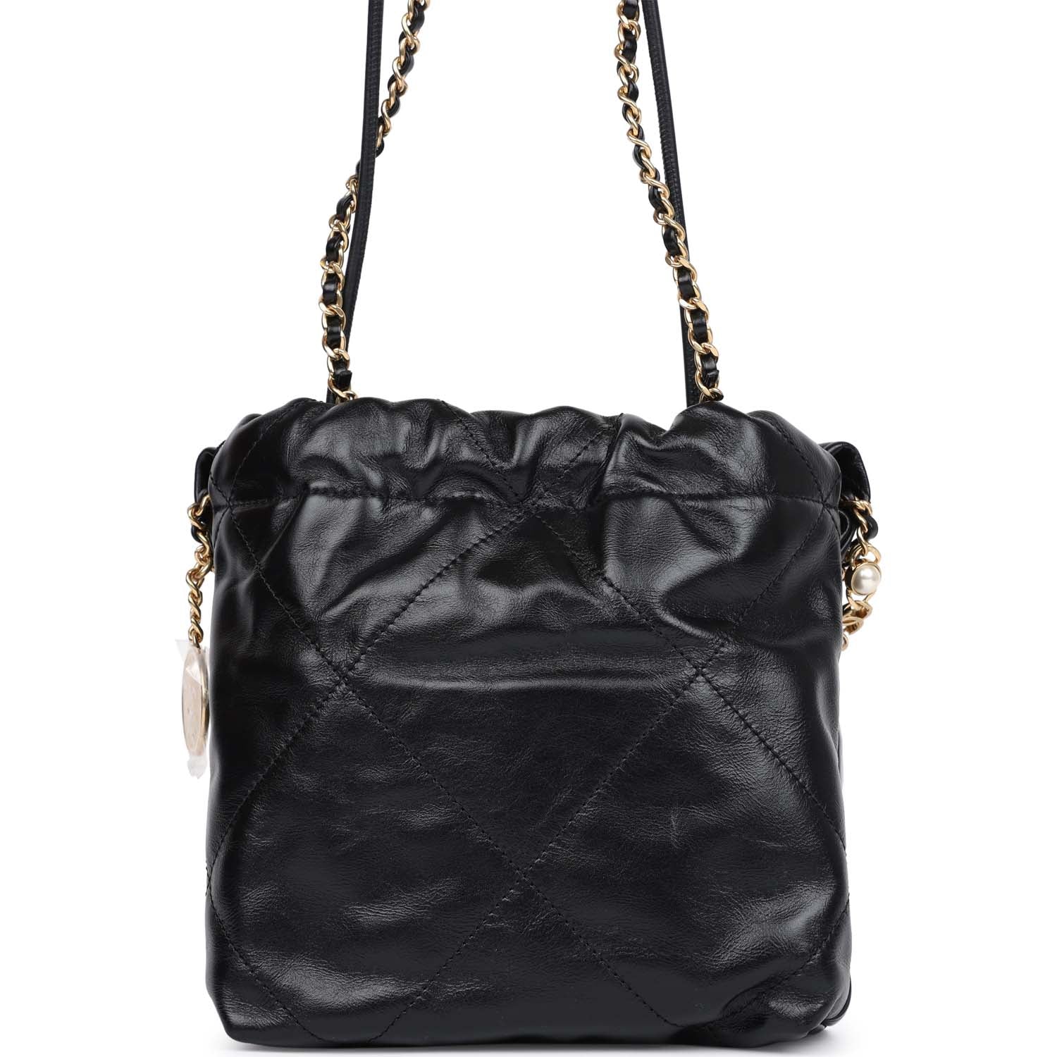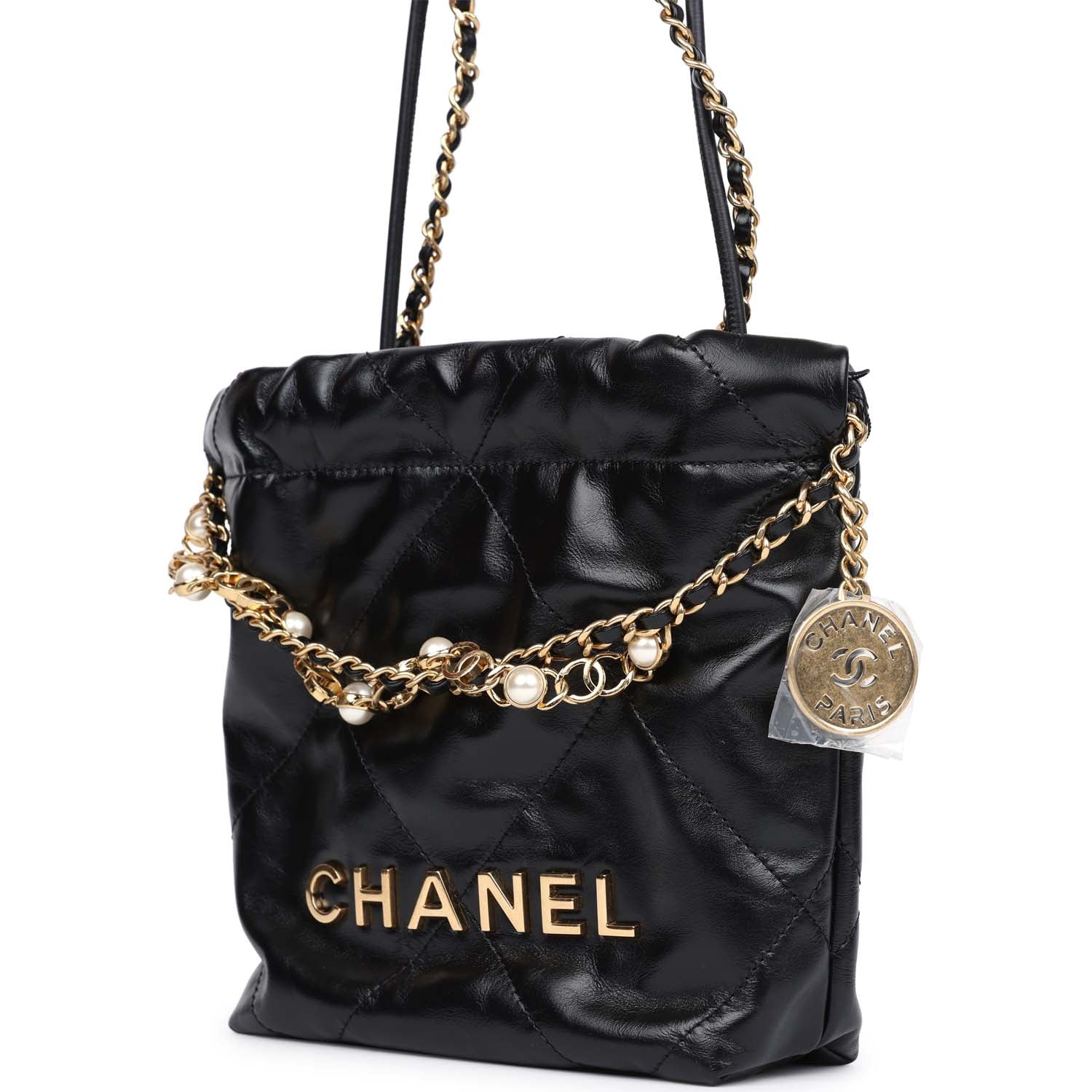 Chanel Mini 22 Bag Black Calfskin Pearls & Gold Hardware