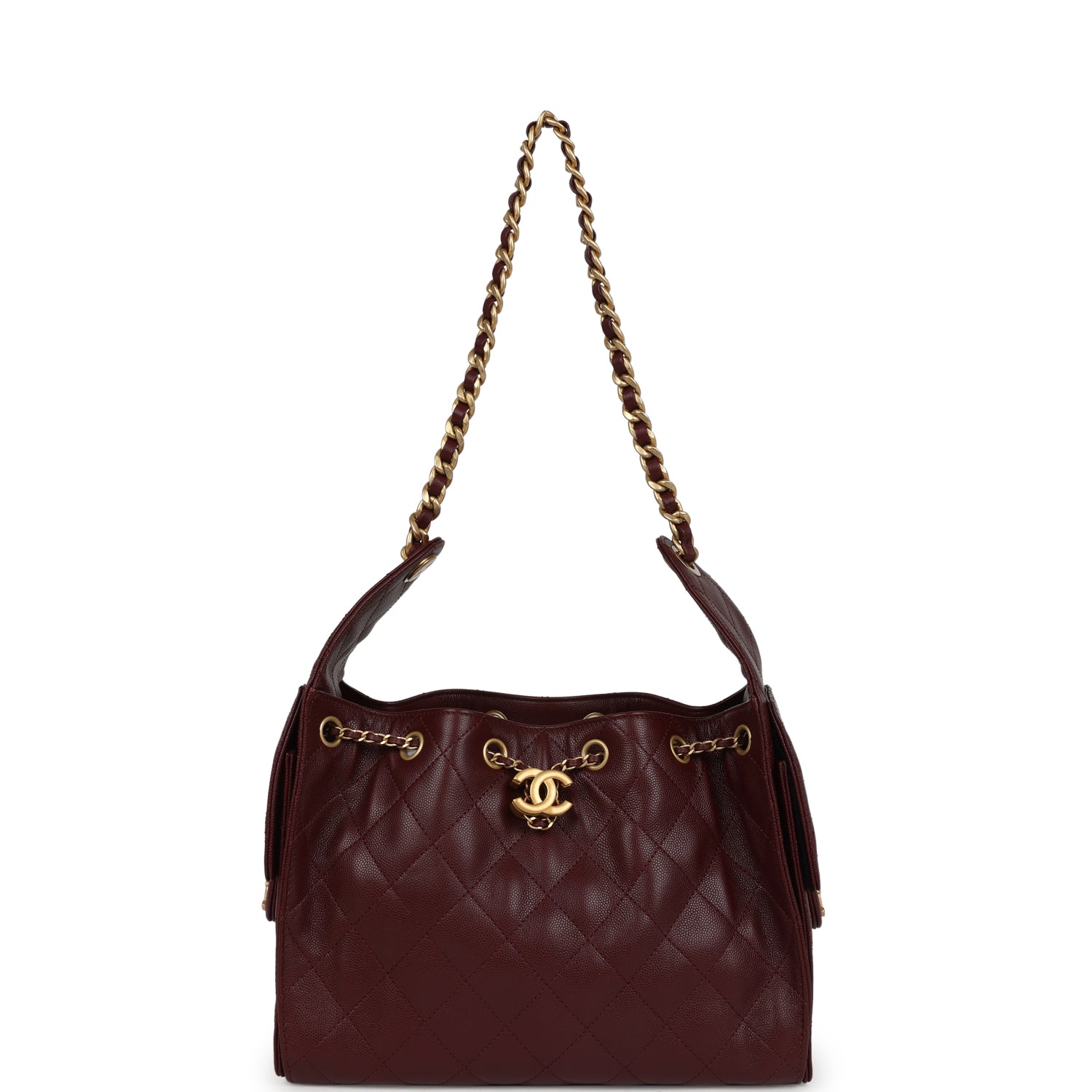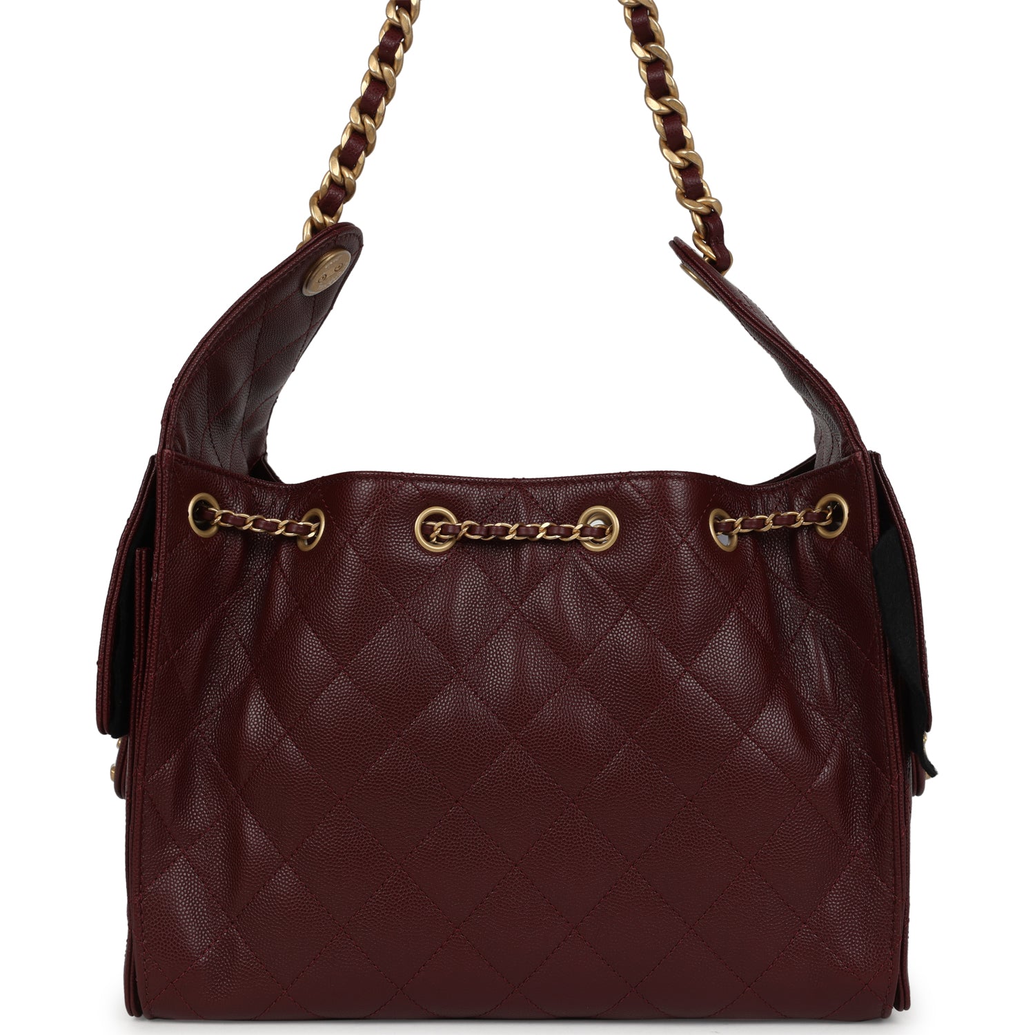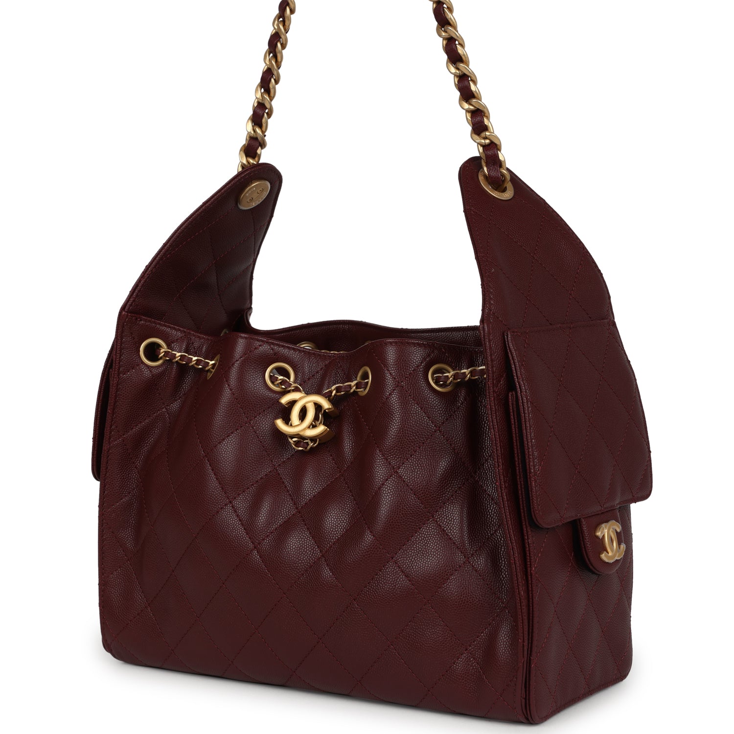 Chanel Small 25 Hobo Bag Burgundy Caviar Antique Gold Hardware