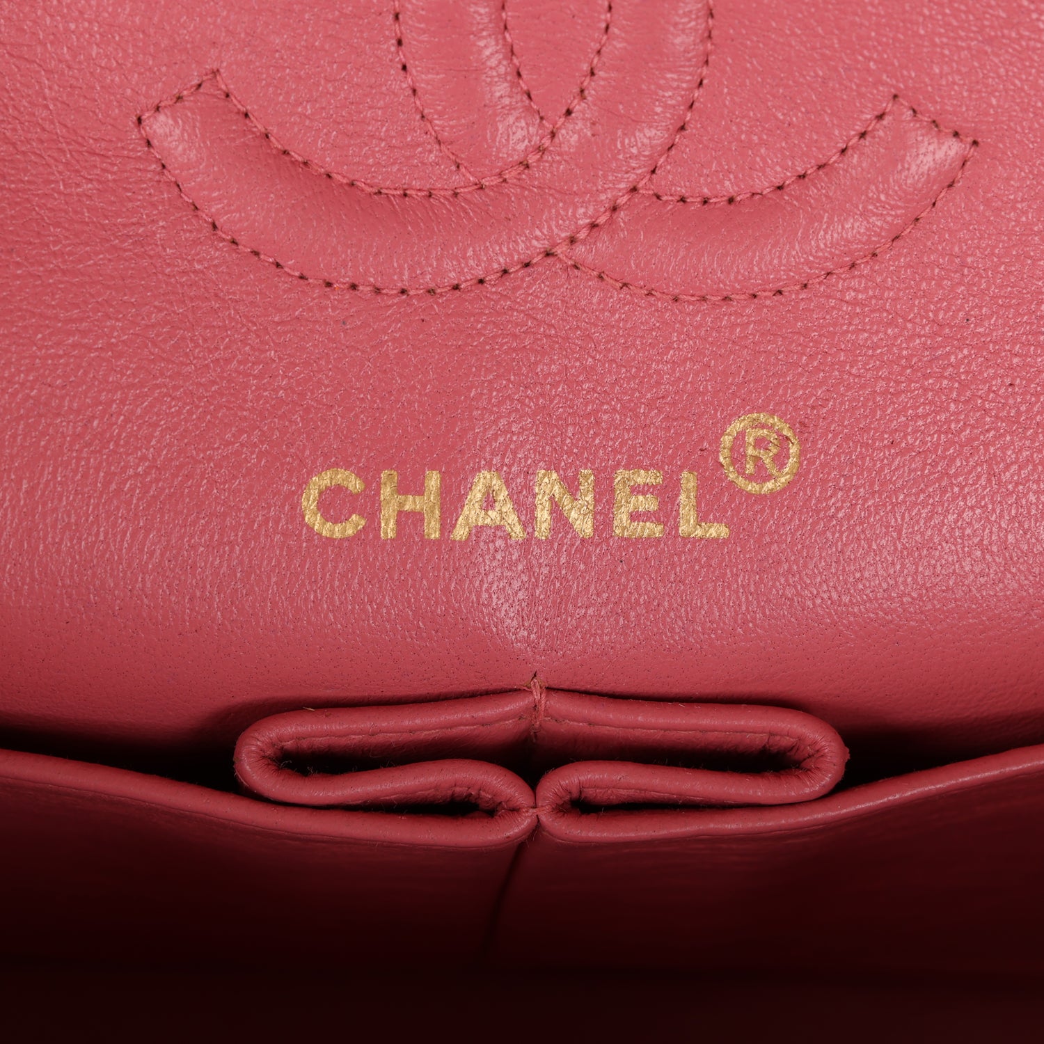 Vintage Chanel Small Classic Double Flap Bag Dark Pink Lambskin Gold Hardware