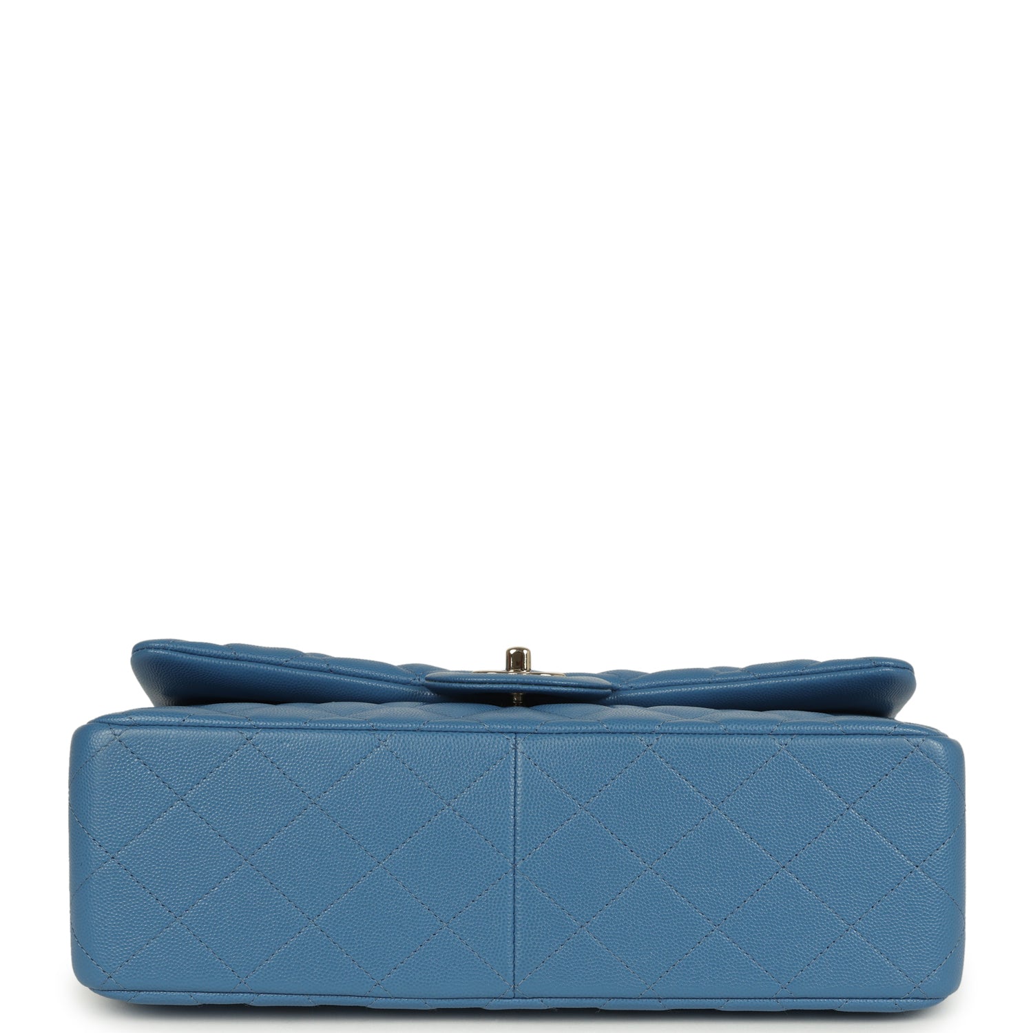 Pre-owned Chanel Jumbo Classic Double Flap Bag Blue Caviar Silver Hardware