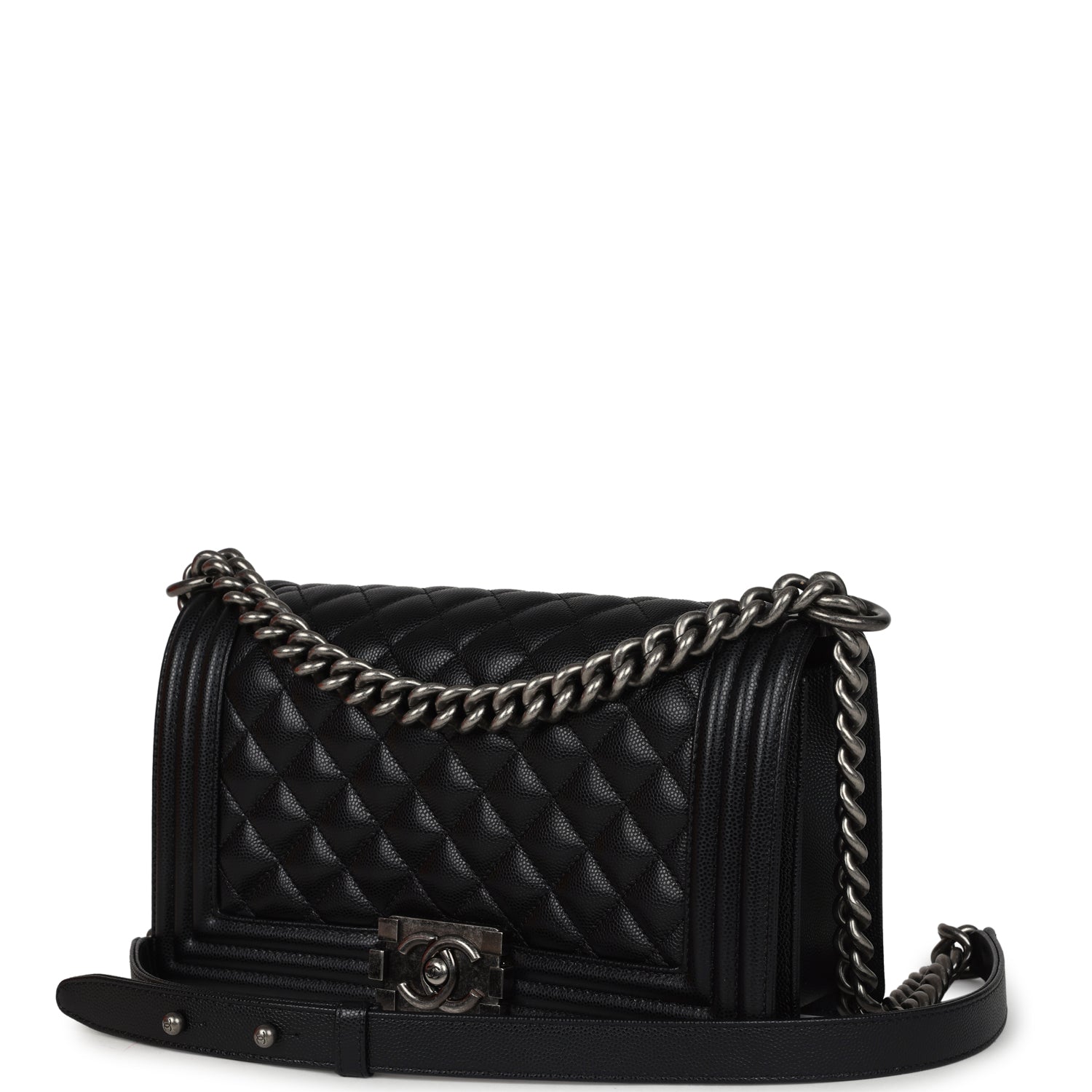 Pre-owned Chanel Medium Boy Bag Black Caviar Aged Ruthenium Hardware