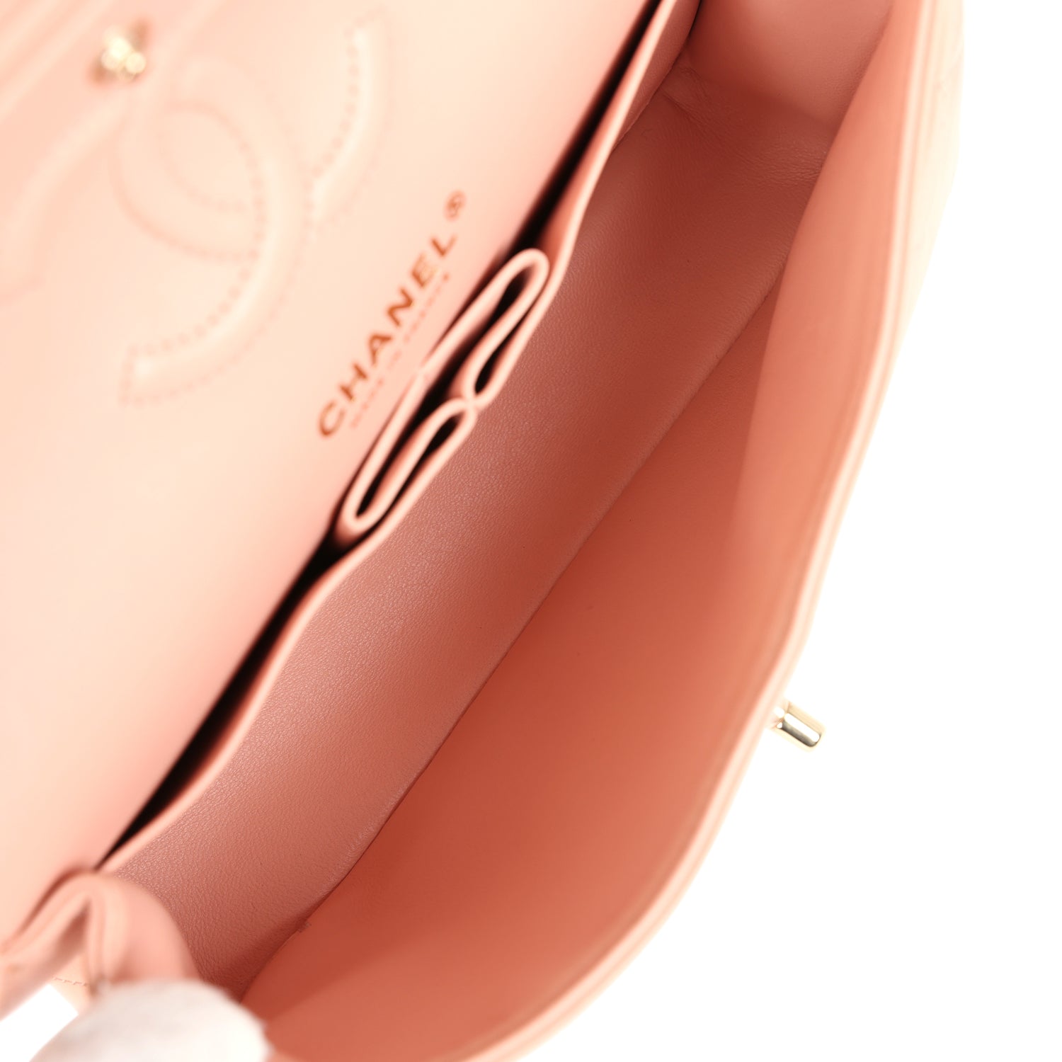 Pre-owned Chanel Small Classic Double Flap Light Pink Lambskin Gold Hardware