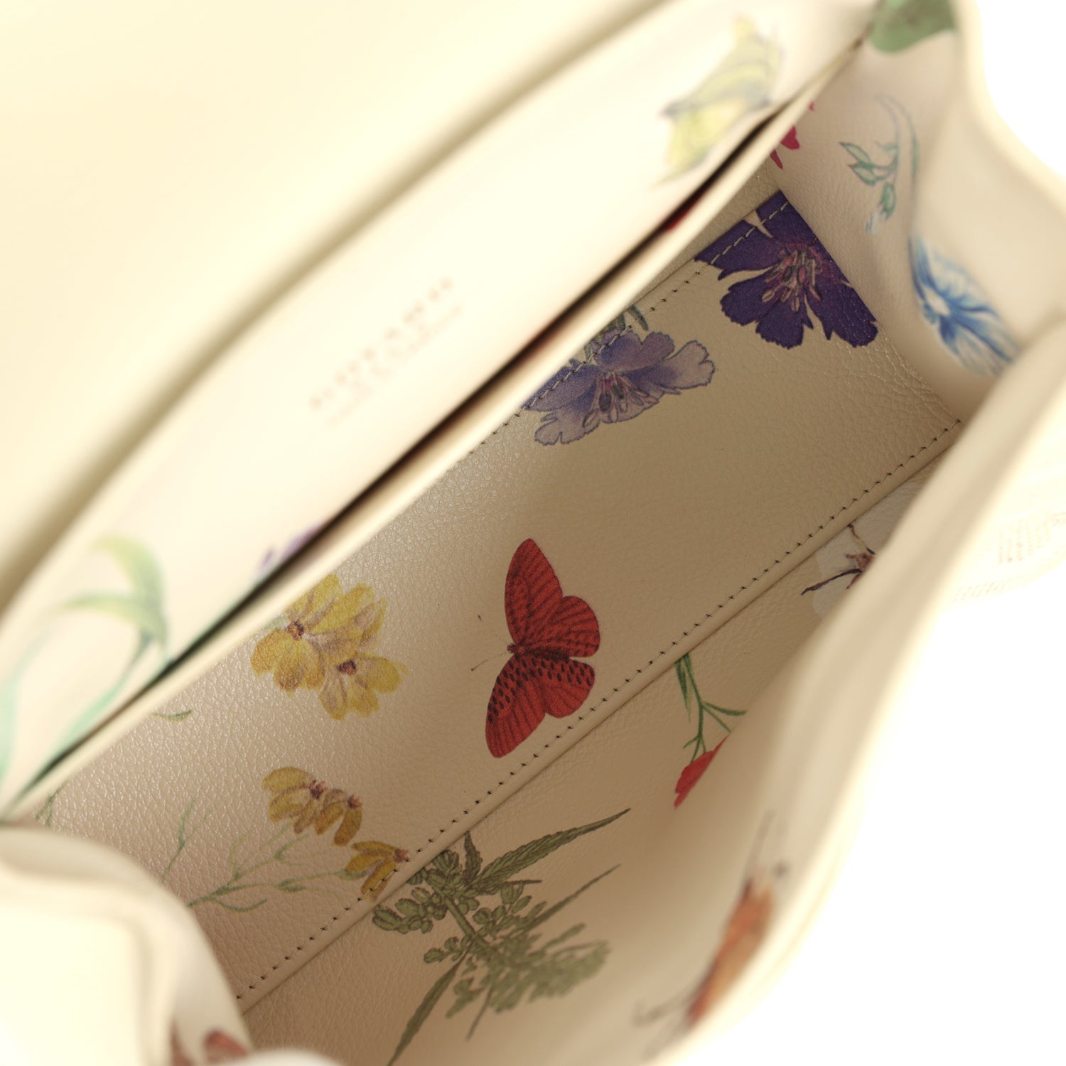 The interior is lined with floral printed goatskin lining with one slip pocket..